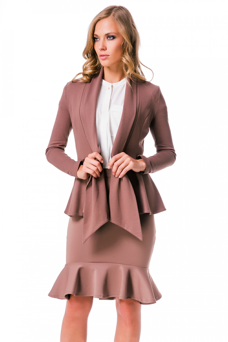 Стильный жакет - прекрасно дополнит Ваш образ. Модель приталенного кроя с удлиненными краями отложного воротника и с длинным рукавом выполнена из качественной микрофибры. Нижняя часть оформлена в виде баски. Спереди застежка на пуговицу. Возможны три способа застегивания. Замечательный жакет, который станет изысканным дополнением к любому Вашему гардеробу.