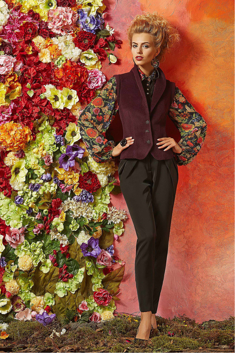 Жилет из итальянской валяной шерсти. С глубоким V-образным вырезом и воротником-шаль. Жилет на подкладке. Изделие украшает изысканная фурнитура в виде страз.