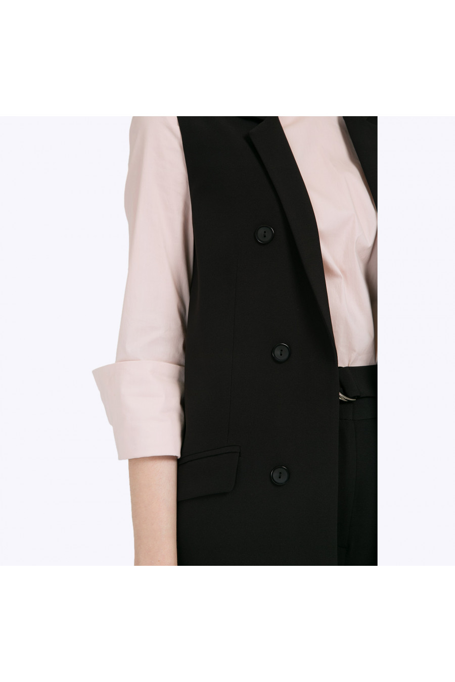 Чёрный длинный жилет на подкладке. Модель прямого покроя,