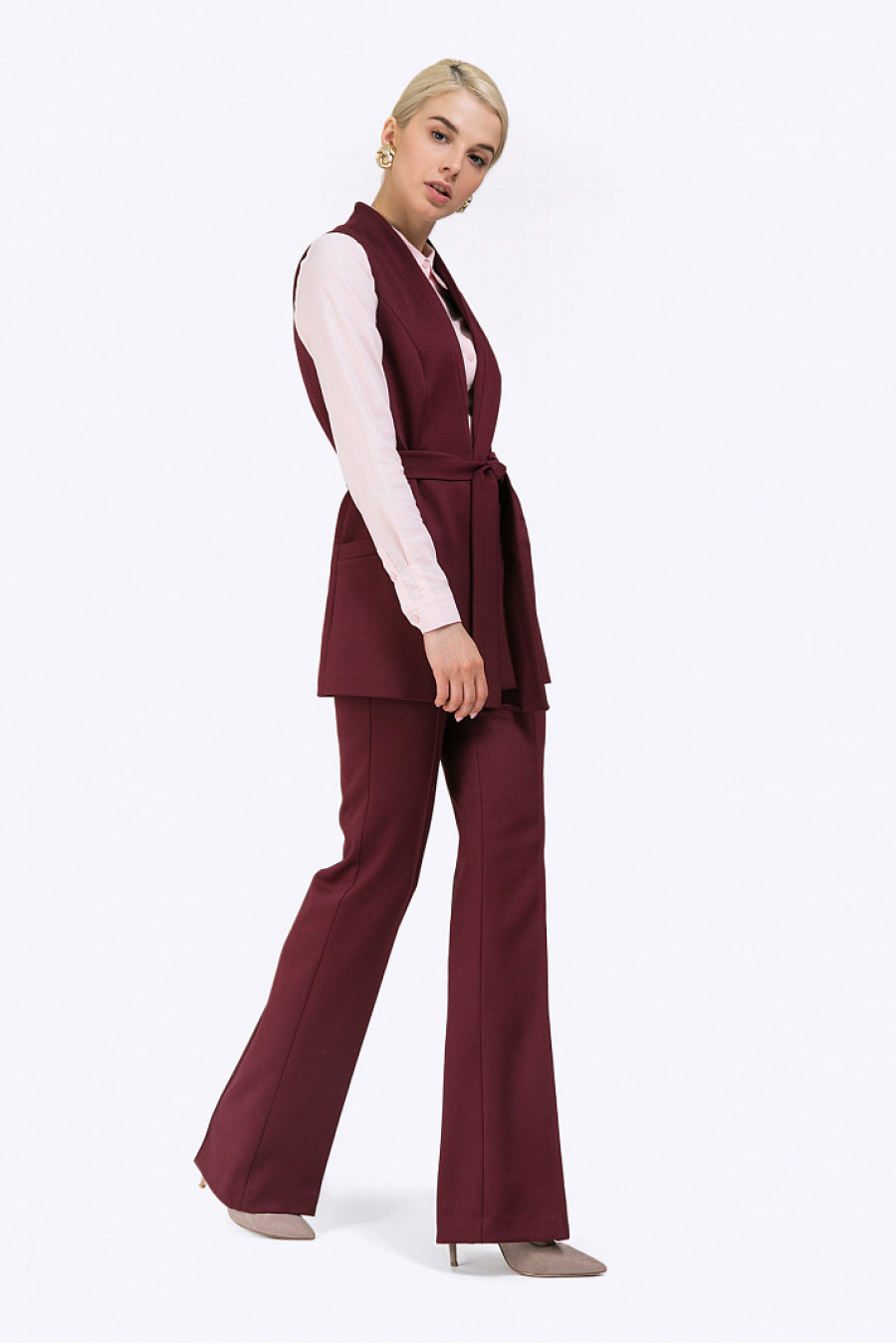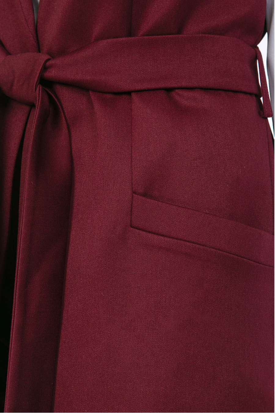повседневных образов. Модель выполнена на подкладке, спереди имеет вертикальныерельефы, V-образное глубокое декольте, дополнена подрезными карманами с широкой листочкой. Линия талии подчёркивается длинным поясом. Образ на фото дополнен брюками D085-primula . Рост фотомодели177 см.