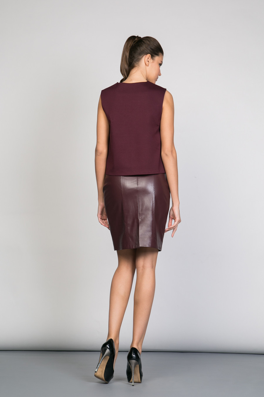 Стильный жилет, расширяющийся к низу, имеет необработанный край.