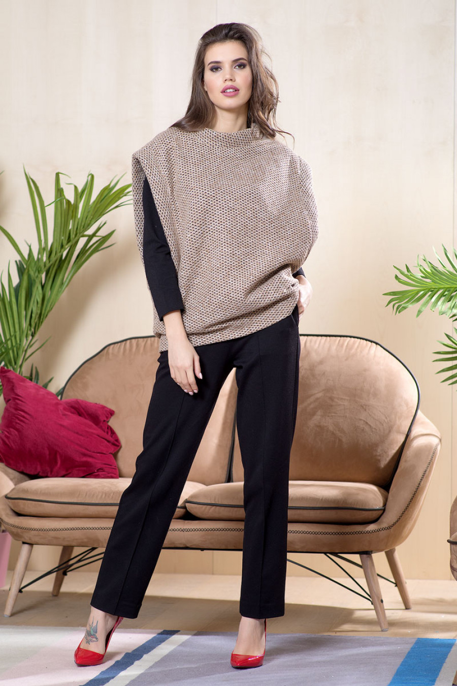 Стильный жилет из пальтовой ткани. Модель свободного кроя с глубокими объёмными проймами и круглой горловиной.